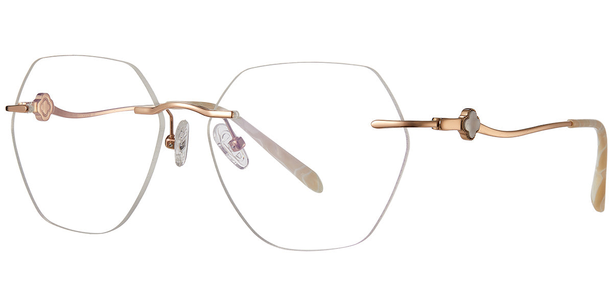 The Pristina glasses combine a luxurious, geometric rimless design with sophisticated elegance. These lightweight frames offer a sleek, modern look that enhances your natural style while providing exceptional comfort. Ideal for those seeking refined eyewear with a contemporary edge.